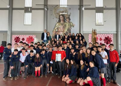 El espíritu salesiano se ha hecho presente en el V Pregón de María Auxiliadora, una tradición que sigue creciendo en emoción y profundidad año tras año. Este 7 de mayo, el pregón ha estado en manos de Miguel Bellido, alumno de 4º de ESO, quien con sus palabras llenas de fe y sentimiento nos ha acercado un poco más al corazón de nuestra Madre Auxiliadora.